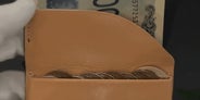 マネークリップの2枚のカバーを端で縫製などで固定すれば、材料の強度で常に閉じようとします。ポケットの開口部をカバーの合わせ目に向ければ、こぼれることはなくなります。