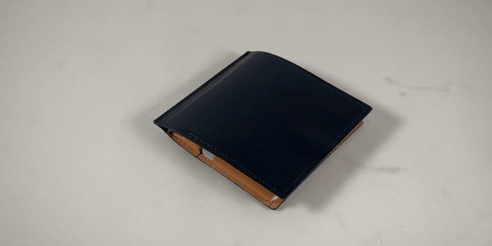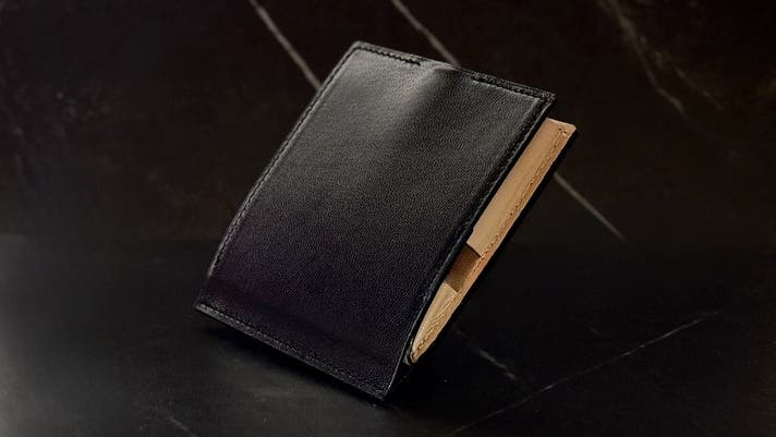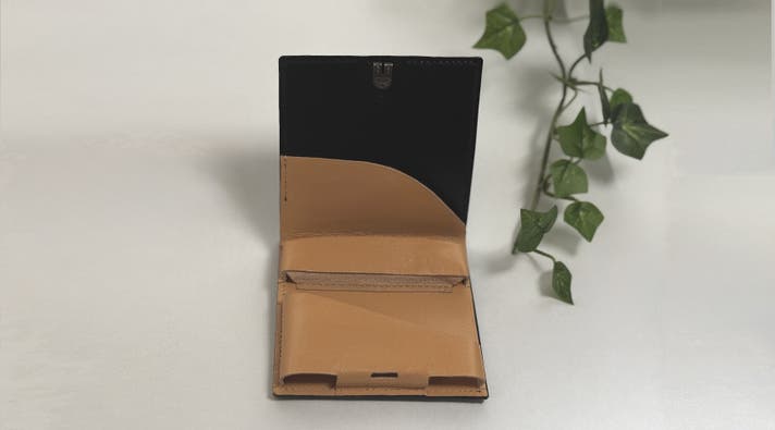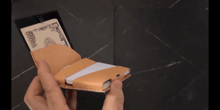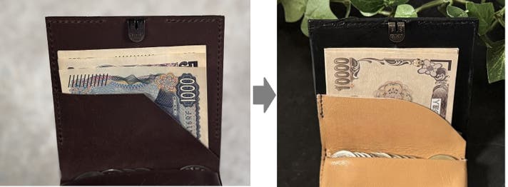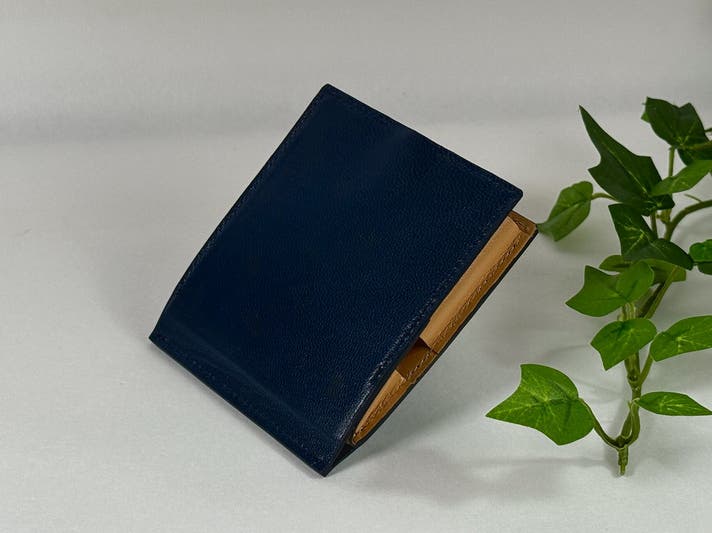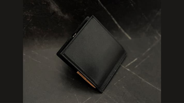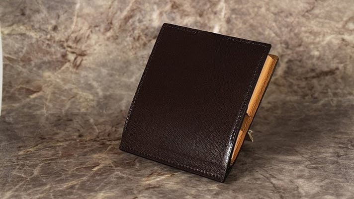 そんな革の匠ならではの薄作り技法で、「ゴートレザー」を二つ折り財布とマネークリップのハイブリッドデザインに美しくまとめ上げました。