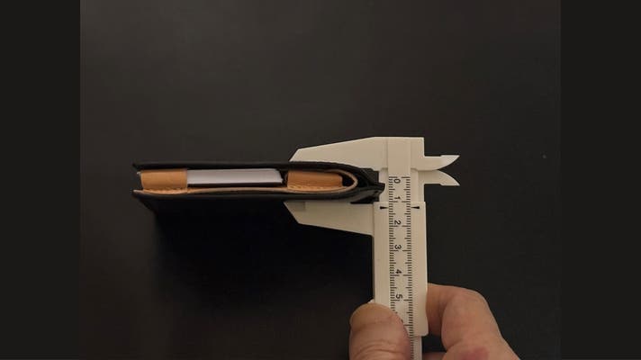 厚さ7ミリの本体に、紙幣25枚・コイン22枚・カード12枚を収納