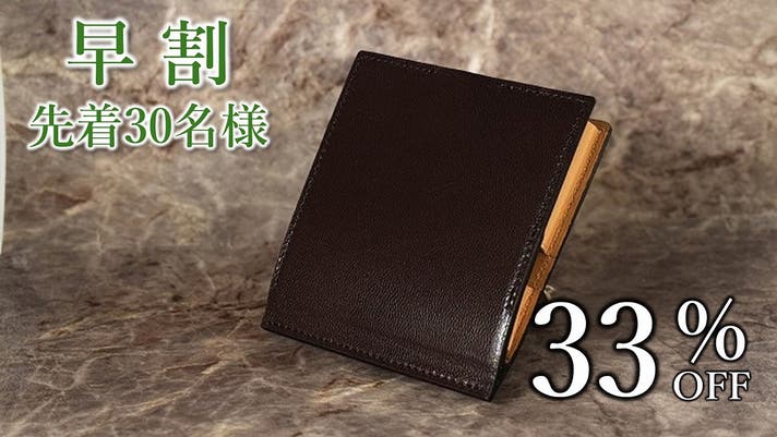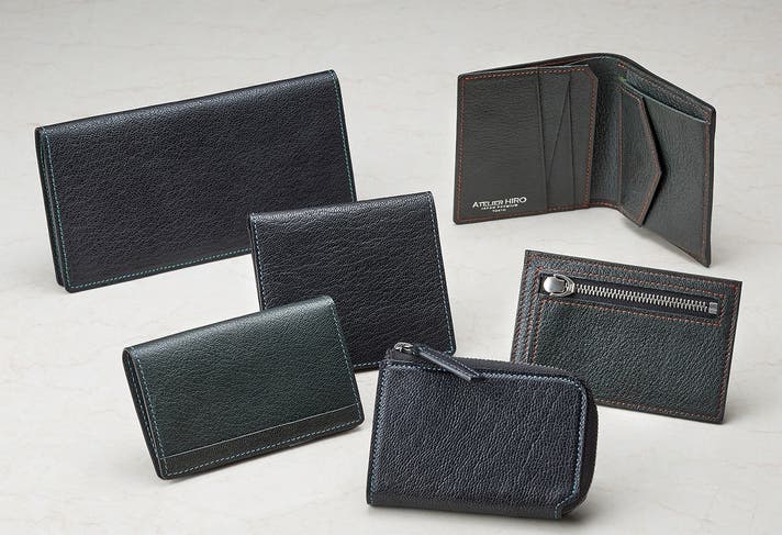 - 二つ折りとマネークリップの融合形を、美しく堅牢なゴートレザーで、革の匠”アトリエ・ヒロ“が凝縮