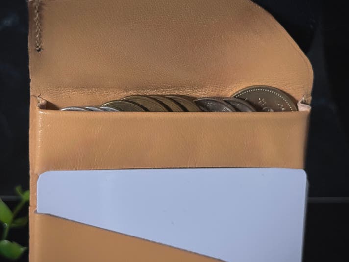 コインが立つ:一円玉より1ミリ浅い薄型ポケットだから、常にコインが立っています。