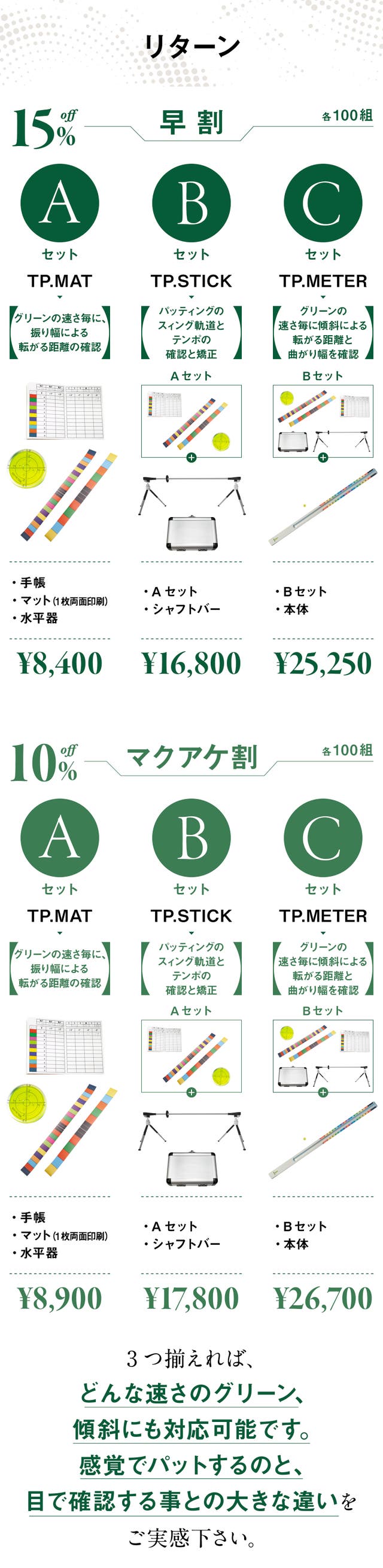 - TP MATでパッティングの振り幅を視覚化。感覚に頼らない効率的な練習で上達速度がアップ!