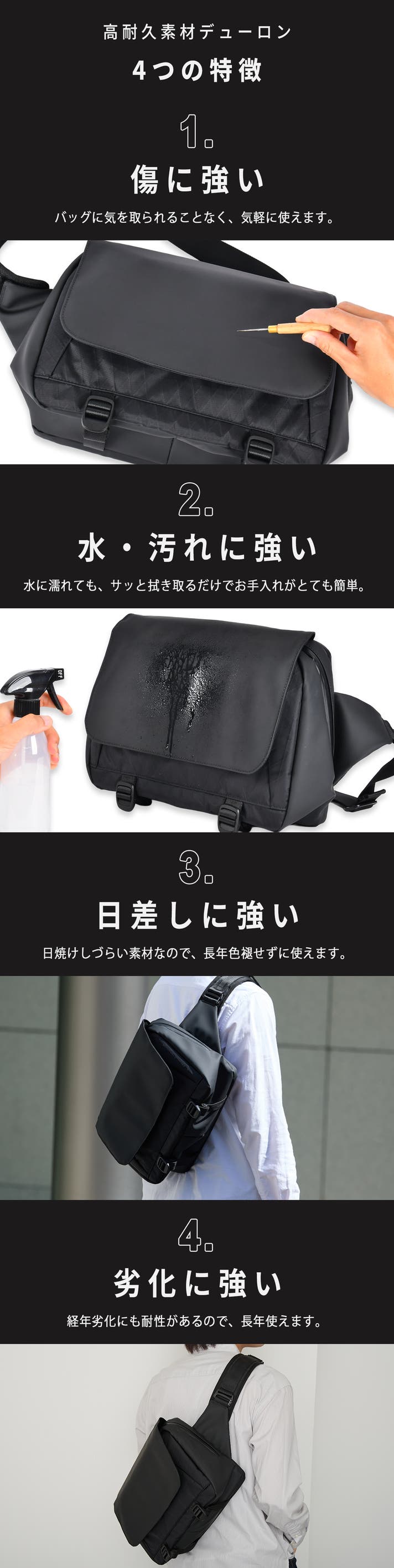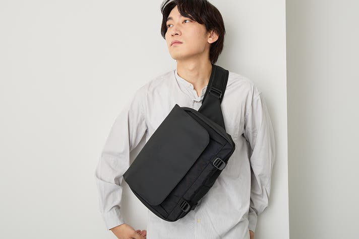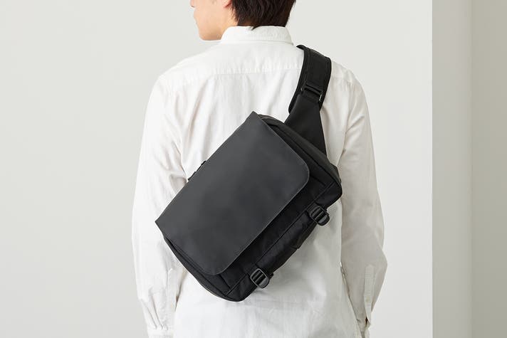 高機能素材X-Pacでさらに進化した傷に強く汚れても簡単に綺麗になる。大人の日常使いに最適なPC対応スリングバッグ。