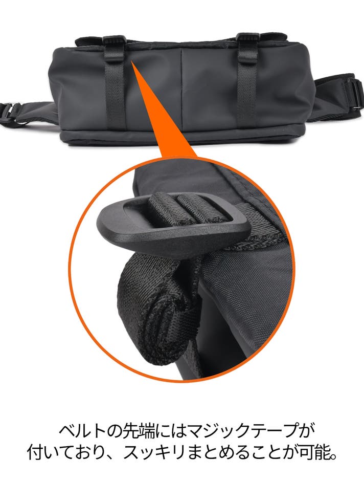 本体のスリングバッグの肩当てに、パッと繋げて使うことができます。