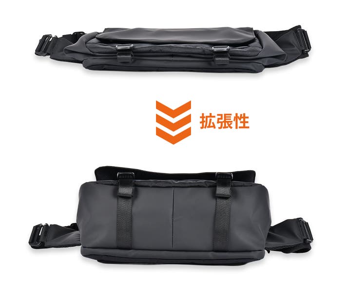 拡張が出来ることで、普段は必要最低限の荷物で身軽に出かけて、荷物が増えたときも拡張することで対応ができるので、いつでもこのバッグ一つで出掛けられる設計になっています。