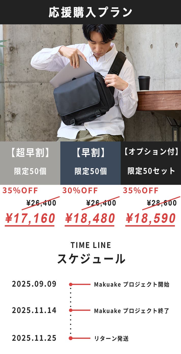 「Makuake(マクアケ)」は、実行者の想いを応援購入によって実現するアタラシイものやサービスのプラットフォームです。このページは、 ファッションカテゴリの 「「長年綺麗に使える」ノートPCもスッキリ収まるスリングバッグに特別仕様が登場!」プロジェクト詳細ページです。