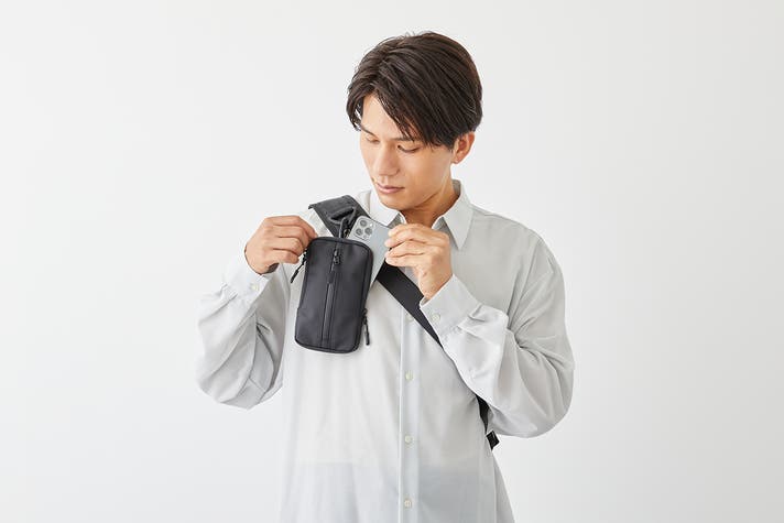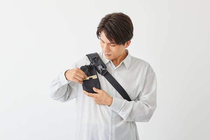 しかしスリングバッグならどこにいても一瞬で、すぐに取り出せます。