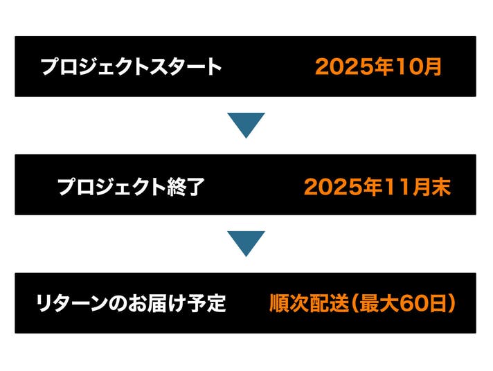 このプロジェクトはAll in型です。目標金額の達成に関わらず、プロジェクト終了日の2025年11月20日までに支払いを完了した時点で購入が成立します。