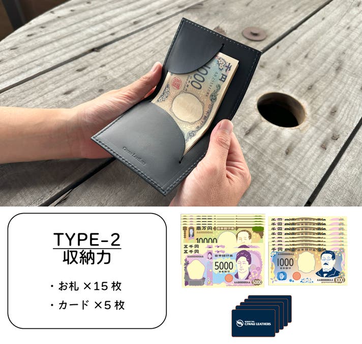 TYPE-2は「お札」「カード」を収納できる『札入れ』です。