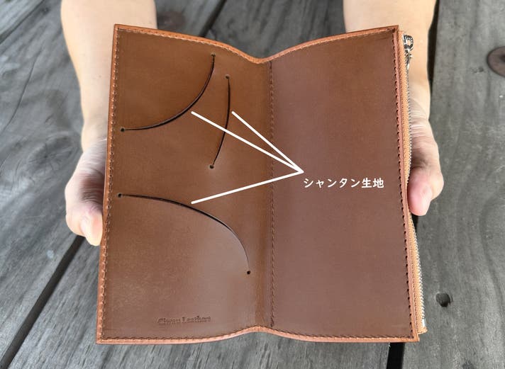 札入れ・小銭入れの内張りに「シャンタン」が使用されています。