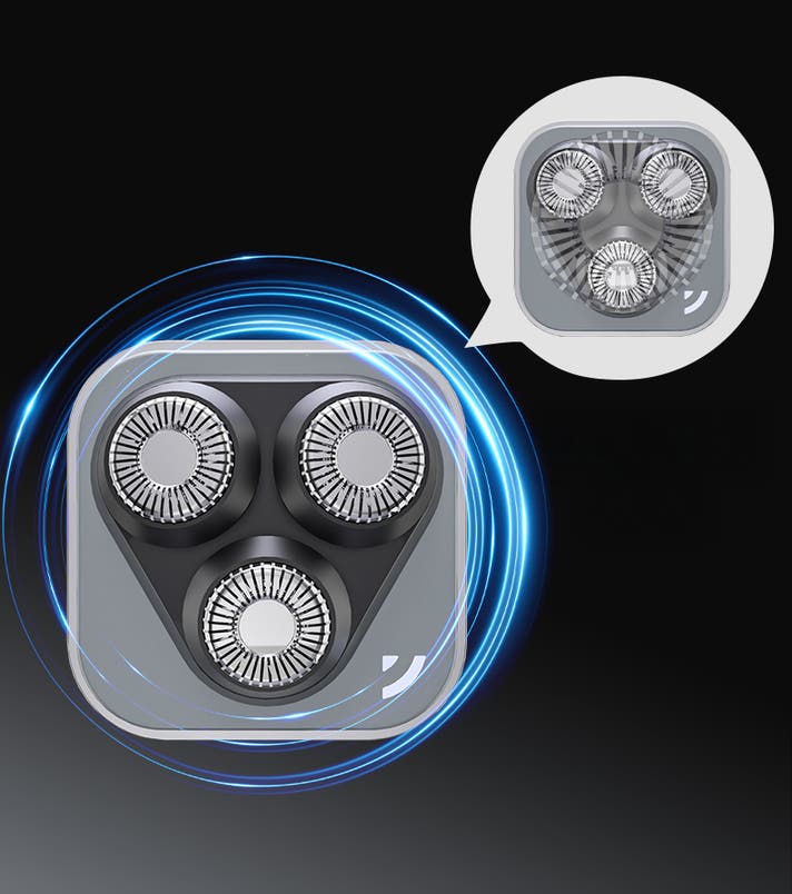 A.回転式シェーバーを使うコツとして、軽く肌に密着させたまま、ゆっくりと小さな円を描くように(反時計回りに)シェーバーを動かしながら剃り進めてください。剃る部分の肌を少し引っ張ってヒゲを立たせると、より効果的に剃れます。