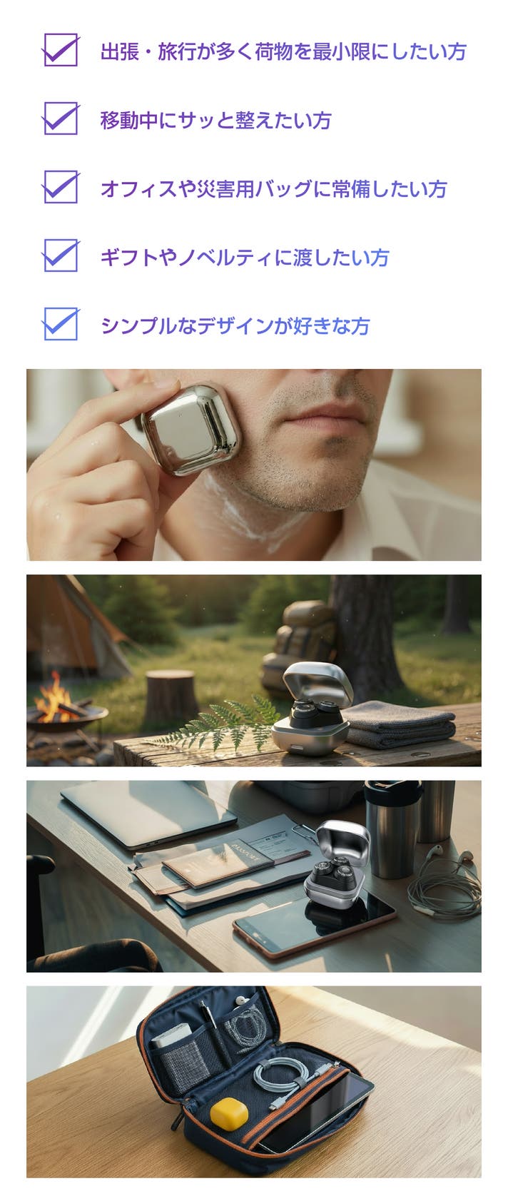 「旅行や出張の荷物を減らしたい」 でも、「ホテル備え付けのシェーバーでは肌が荒れるし、剃り残しが気になる...」