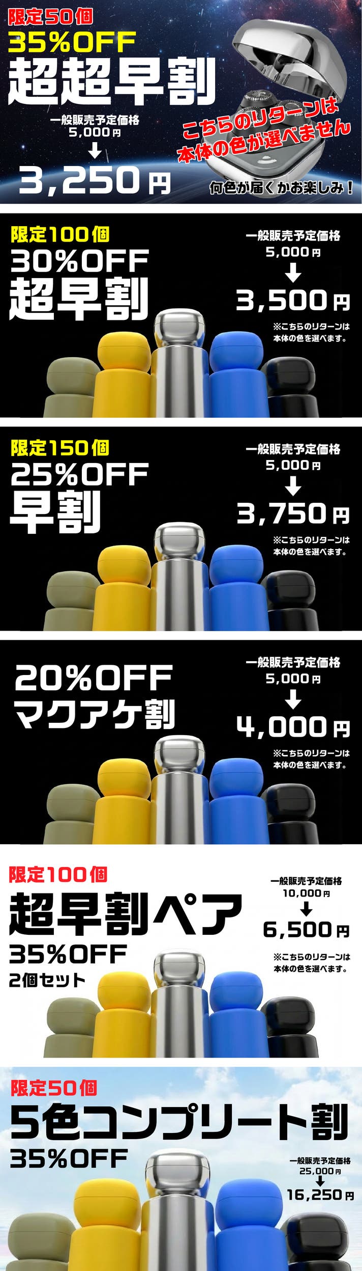 ※皆様の応援購入により量産効率が向上した場合、正規販売価格が販売予定価格より下がる可能性もございます。