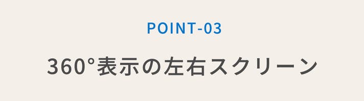 左右のスクリーンはそれぞれ0°から360°まで自在に回転できるため、自分だけで集中して作業したいときはもちろん、複数人に資料を見せながら進めたい場面でも活躍します。