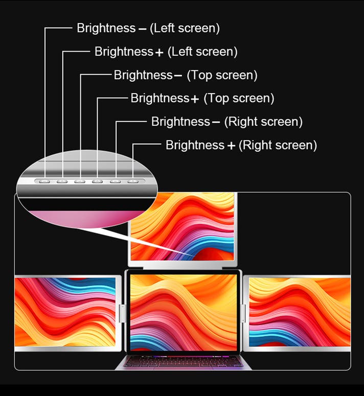 「トリプルモニター」の明るさ調整はモニター本体のボタンからおこなえます。