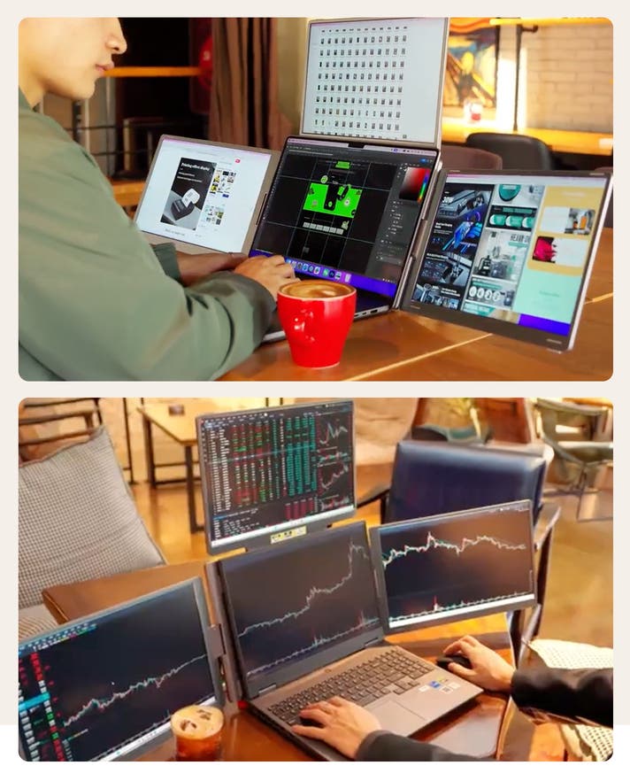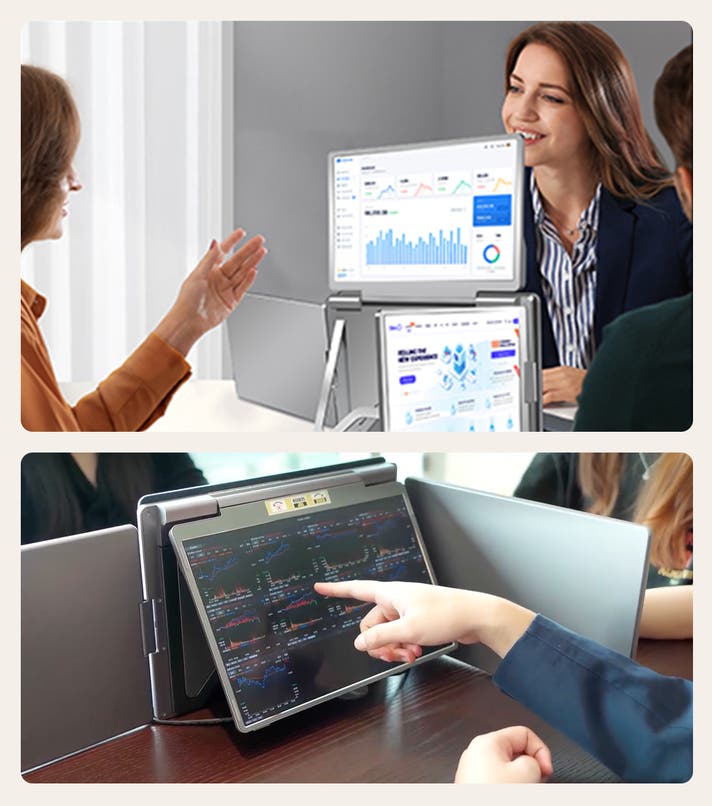 トリプル拡張ディスプレイは、設置も操作もシンプルで、外出先でも作業効率を最大化してくれる高性能ポータブル拡張ディスプレイです。