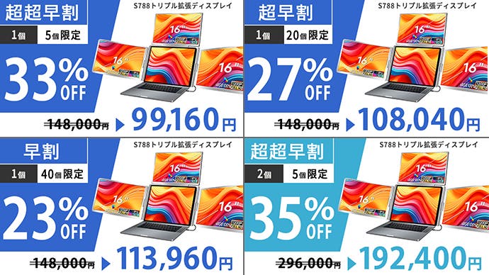 【早割】23%OFF 折りたたみ式拡張トリプルモニター1個 限定40個
