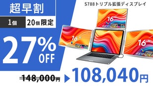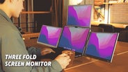 最大4画面展開が可能な折りたたみ式ポータブル拡張ディスプレイ「トリプルモニター」が日本初上陸!