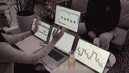 ノートPCに最大3画面を拡張でき、プレゼンやWeb会議、資料作成も一度にこなせる広大な作業空間を実現しました。上部ディスプレイは180°反転可能で、対面相手への画面共有もスムーズにおこなえます。