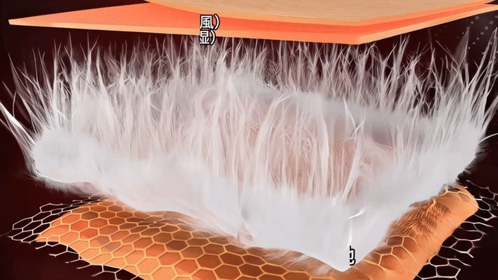 ブレイクスルー:異素材のハイブリッド構造 そこで私たちは、一つの素材に頼るのではなく、異なる機能を持つ素材を積層させる「Triwarm独自の多層システム」を考案しました。
