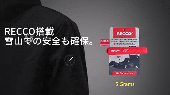 電源も操作も不要。着るだけで、あなたの居場所を捜索隊に知らせるRECCOリフレクターを内蔵。