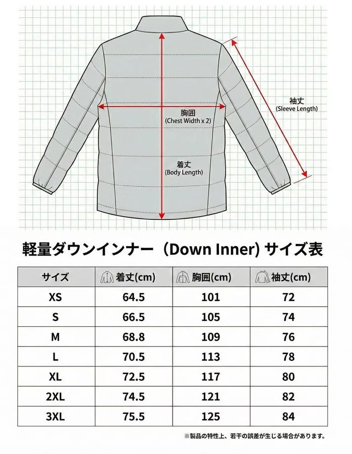 Triwarmのインナーダウンは、ダウンボール(綿毛)の比率を限界まで高めた独自設計を採用しています。より多くのデッドエア(空気の断熱層)を確保することで、着膨れしない「薄さと軽さ」、そして「高い断熱効果」を見事に両立させました
