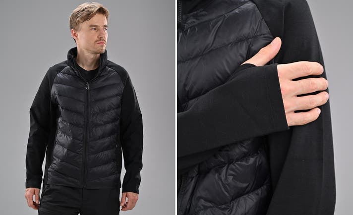 エアロゲル素材の特性上どうしても犠牲になりがちな「伸縮性」は、Triwarm独自のパターン設計で解決しました。 植物由来のSorona®ファイバーに加え、脇下や肘周りに十分なゆとり(スペース)を持たせることで、素材の張りを相殺。腕の曲げ伸ばしもストレスフリーに。