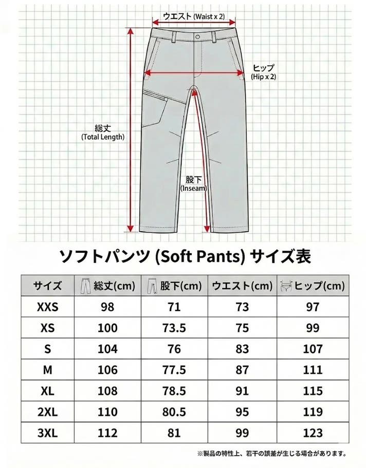 サイズ XS / S / M / L / XL / 2XL / 3XL(男女兼用)