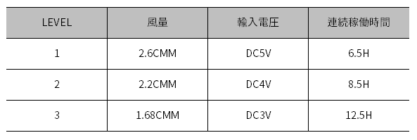 10000mAhのバッテリーでTropcoolを給電した場合、中風モードで8.5時間の連続稼働が可能です。