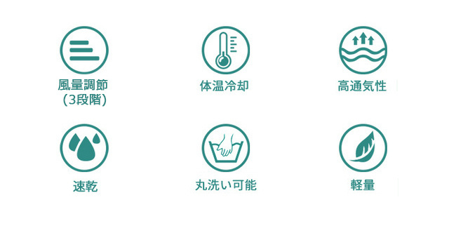 - 【大風量】体を瞬時に冷やし、全身を清涼感で包み、アウトドアをもっと快適に!