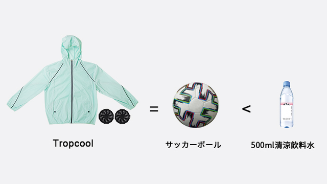 Tropcoolを着用した場合、身体に沿って大量に空気を送風するため、涼しさを体感することができます。