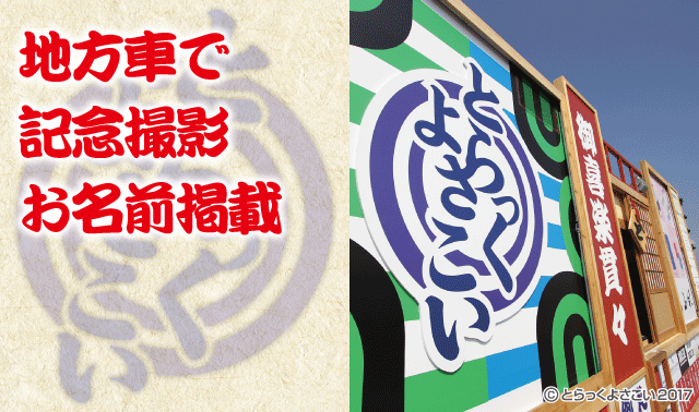 また、高知よさこい祭にお越しいただけた場合は、踊り子、地方衆と一緒にその地方車の前で記念撮影をしていただけます。