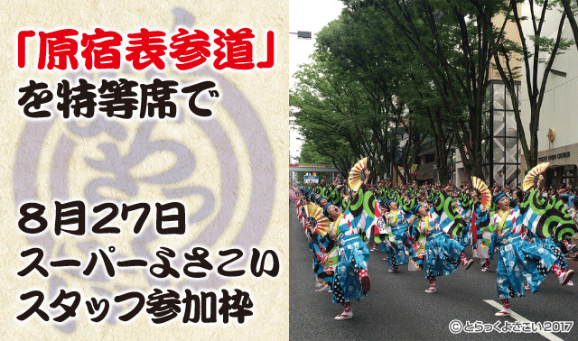 2017年8月27日に開催「原宿表参道元氣祭スーパーよさこい」に丸一日ご参加頂けます。