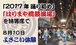 2017年の踊り初め「はりまや橋」、屈指のロングコース「帯屋町」、初!!地方車上でよさこい体験「中央公園」と、高知よさこい祭りの中でも魅力あふれる3会場をセレクトいたしました。