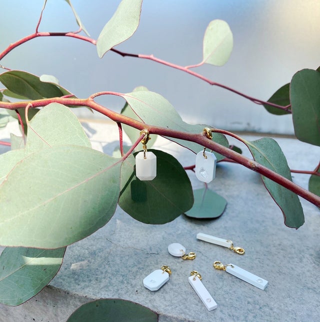 小さなチャームで邪魔にならず、耳の下で装着するとピアス風に。