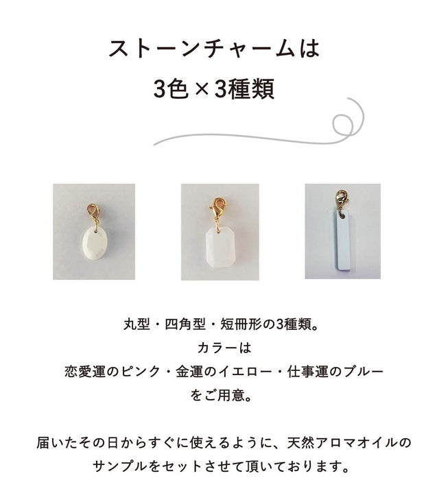 お好きなアロマストーンチャーム3つ(アロマオイルサンプル付き)