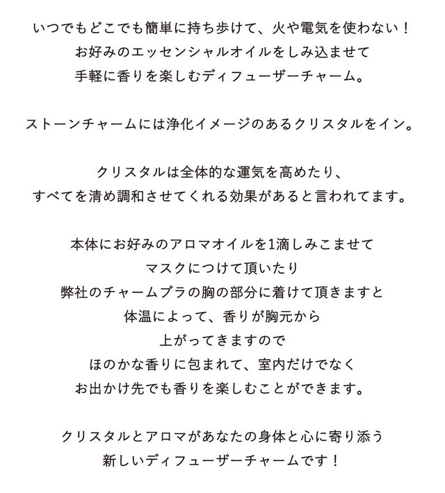 - クリスタルとアロマがあなたの身体と心に寄り添う、新しいディフューザーチャームです!