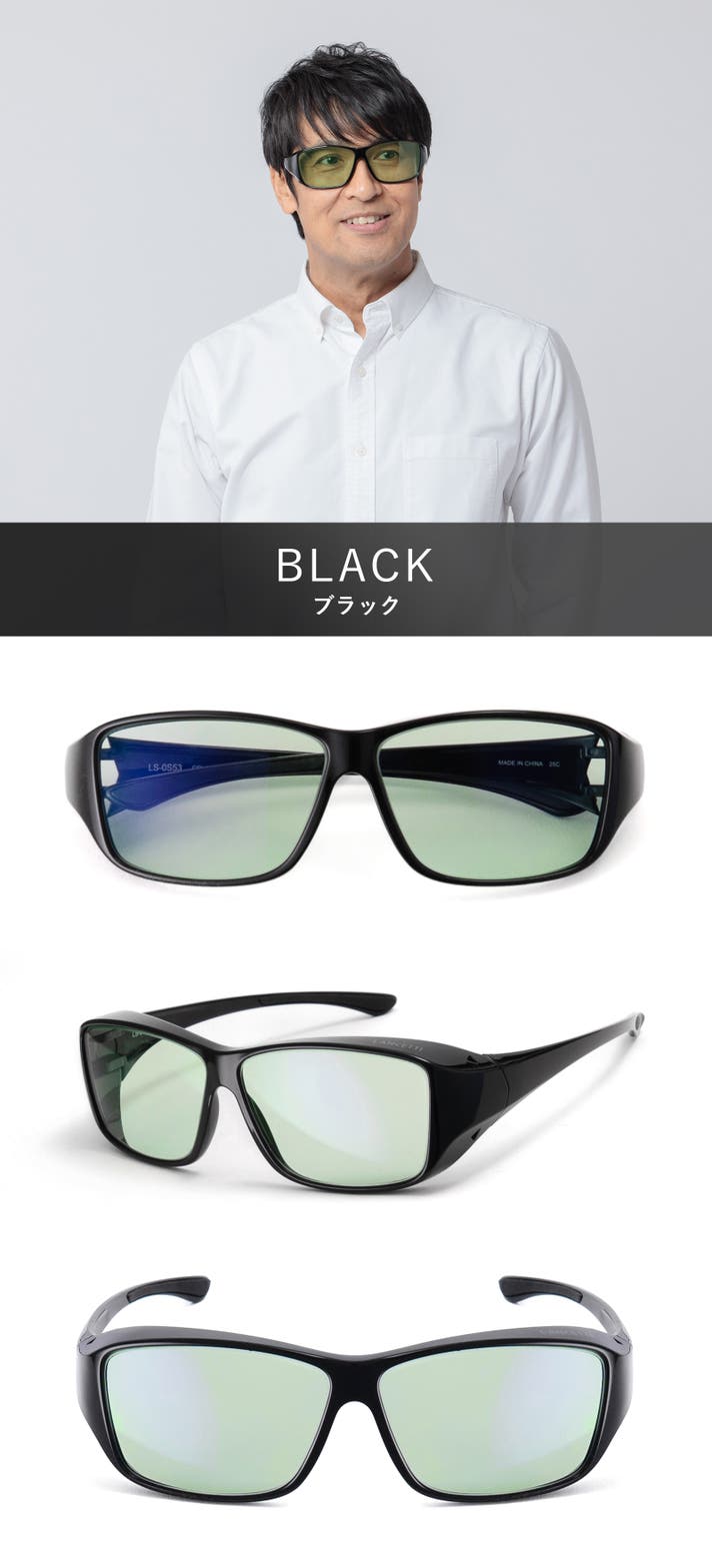 LEDライト対策に!多くのメガネに対応可能で昼も夜も見やすいオーバーサングラス「LS-OS53DU」 一般販売価格12,600円(税・送料込み)のところ各色先着80個限定で15%OFFの10,700円にてお届けします。