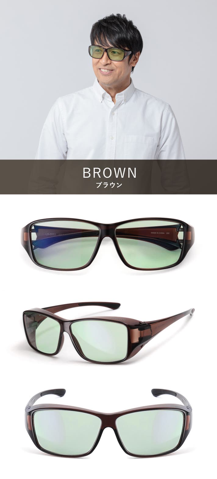 より多くのメガネに対応した、運転に最適なオーバーサングラス LANCETTI「LS-OS53DU ブラウン」12,600円(税・送料込)→20%オフ 10,000円(税・送料込) 50個限定