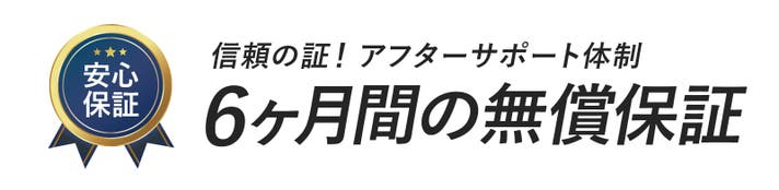 本商品は、商品到着から6ケ月間の無償保証サービス付きです。商品の破損等無償にて修理対応いたします。(※お客様のご使用による軽微な傷は対象外です。)