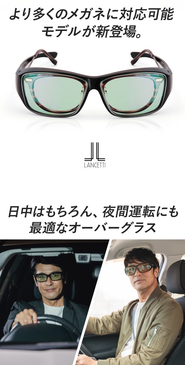 より多くのメガネに対応した、運転に最適なオーバーサングラス LANCETTI「LS-OS53DU ブラック」12,600円(税・送料込)→20%オフ 10,000円(税・送料込) 50個限定