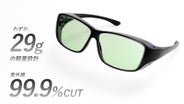 - メガネの上からかけてもそのままかけてもOK!重さが気にならないかけ心地も追求