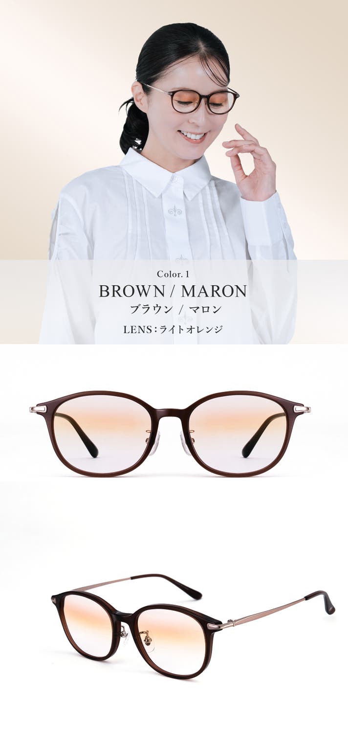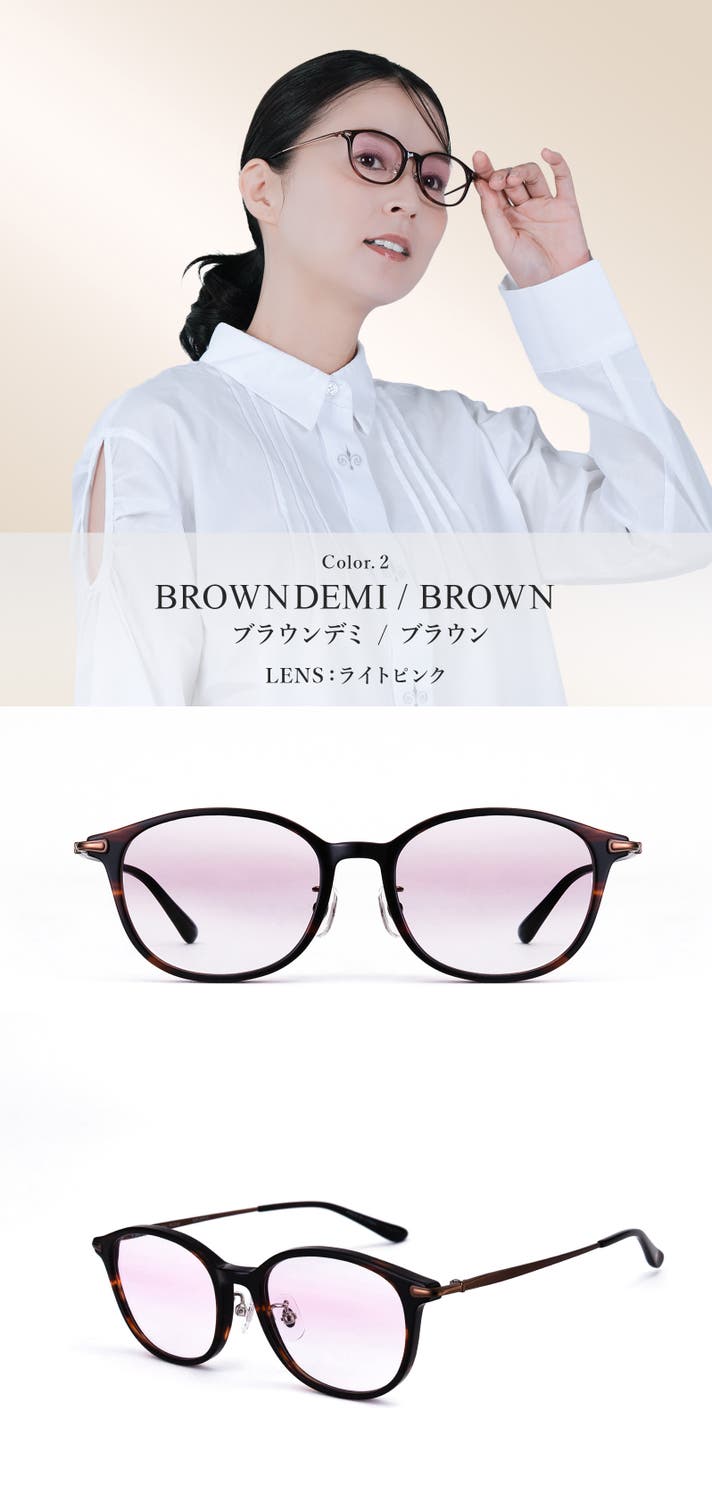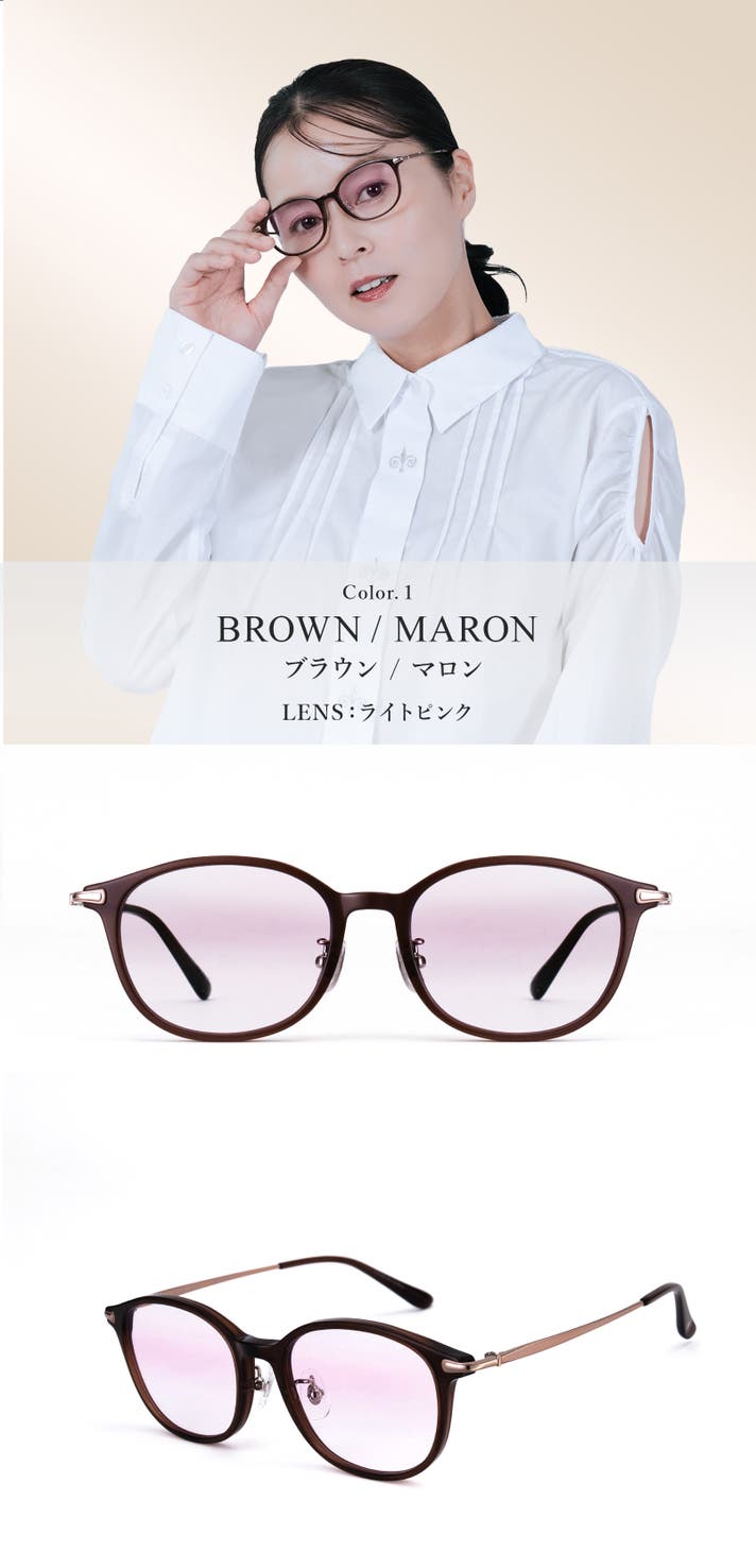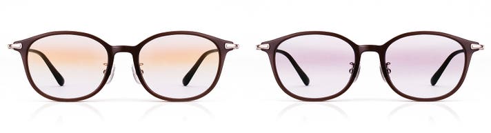 レンズカラーはイエベ(イエローベース)とブルべ(ブルーベース)に最もあう、汎用性の高いライトオレンジとライトピンクの2種類ご用意しました。それぞれパーソナルカラーにあわせてお選びいただけます。