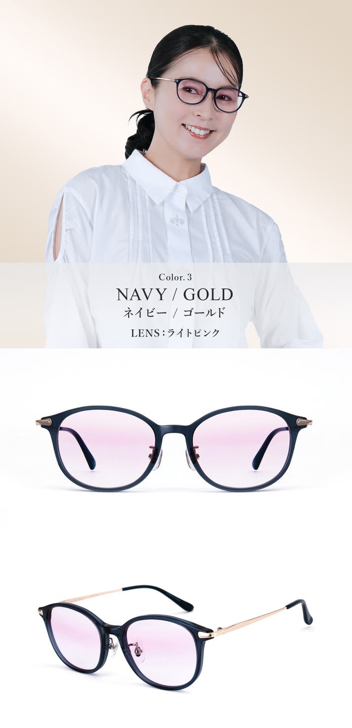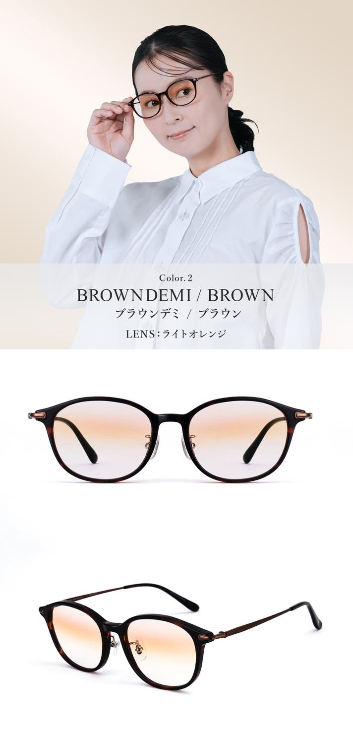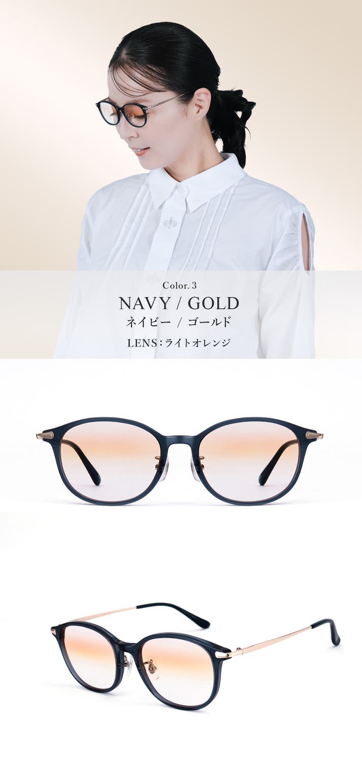 レンズカラーはイエベ(イエローベース)とブルべ(ブルーベース)に最もあう、汎用性の高いライトオレンジとライトピンクの2種類ご用意しました。それぞれパーソナルカラーにあわせてお選びいただけます。