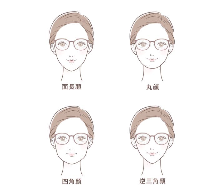 似合うメガネを選ぶ際に、一般的にはお顔の形状にあわせて下記ポイントを参考に選んでいただくことで見た目がすっきりとします。