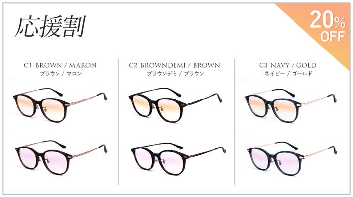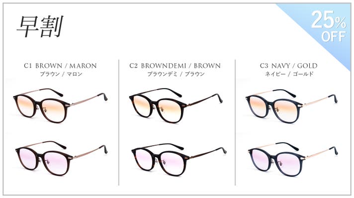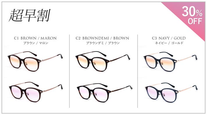 (※上記ご説明はレンズカラー選択のご参考までに記させていただきました。実際にかけた際に個人差がありますので、予めご了承願います。)
