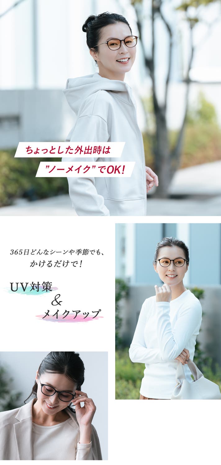- ブルべさんもイエベさんも、かけるだけでパット華やぐ、アメメイクいらずのメイクスルーサングラス