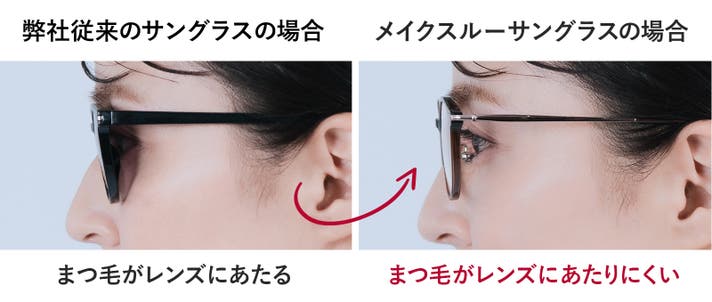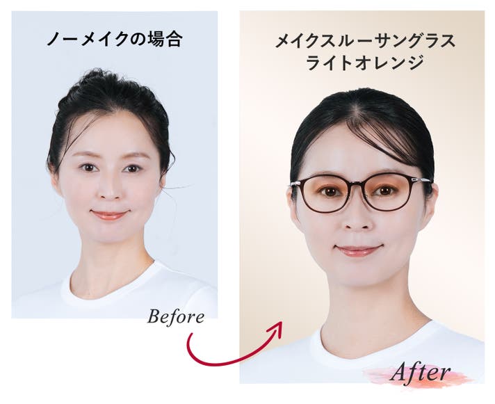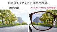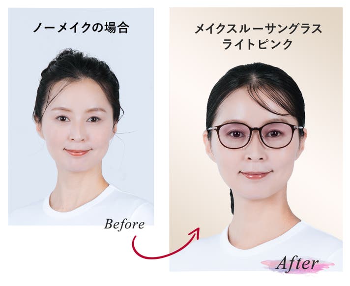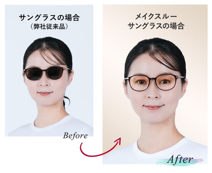 メイクスルーサングラスをかけると普通のメガネに比べて表情が明るくなります。