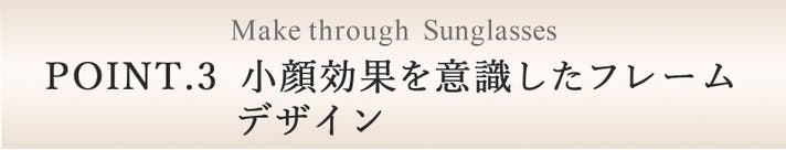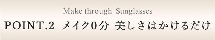 レンズ中央部に肌馴染みの良い色が入ることにより、かけた時点で軽やかな血色感をプラスします。まるでメイクをしたように明るく元気にみせることで気持ちまで明るくなる不思議なメイクスルーサングラス。