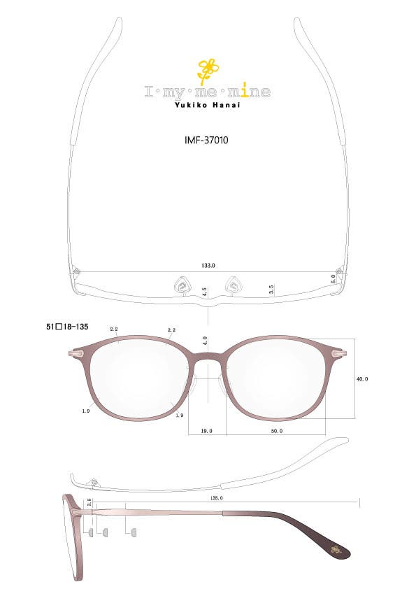 フレームのフロント素材は、天然素材コットン由来のアセテート生地を採用。成型プラスチックフレームでは実現できない高級感があり、肌馴染みがいいため、かけてしっかりとフィットします。テンプル(つる)は弾性が特徴のβチタンを採用、型崩れしにくく人に優しい素材の組み合わせです。IMF-37010MTはメガネフレーム同様のつくりです。お近くの眼鏡店で度付き対応可能なサングラスです。